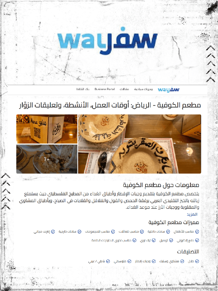 كان مطعم الكوفية هو السباق ليجسد حصرا تجربة استثنائية للطعم الأصيل من عبق الماضي ويجعل من زيارة المطعم محاكاة لأجواء البلدة القديمة بكل أيقوناتها المرئية والمسموعة.